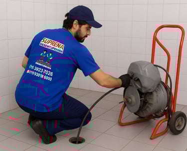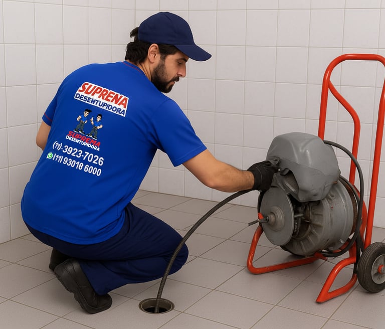 Desobstrução pesada com alta pressão para indústrias e residências.